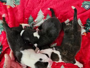 Our puppies leave with full health paperwork/records, parents' genetic testing results, an emergency supply of NuVet (the amazing immune booster we give our pups & adults), 30 days of FREE pet insurance through our sponsor Trupanion, enough food for a week, microchip information & registration process information, scented blanket, and a lovely puppy integration pack to allow your pup (and you) to move in smoothly! Puppy packs are filled with your pup's essentials and handy items for families! (brushes, nail trimmers, toys, safe chew bones, etc)